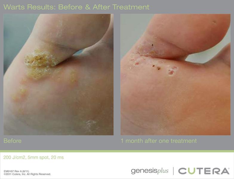 2. Is the Laser being used the most powerful and advanced FDA approved CUTERA GENESIS PLUS LASER. The Laser Genesis has a larger spot size, compared with a 1 mm pin point size of other lasers. Treatments take only 10 minutes per foot compared to 40 minutes to 1 hour required with smaller pin point sized lasers.